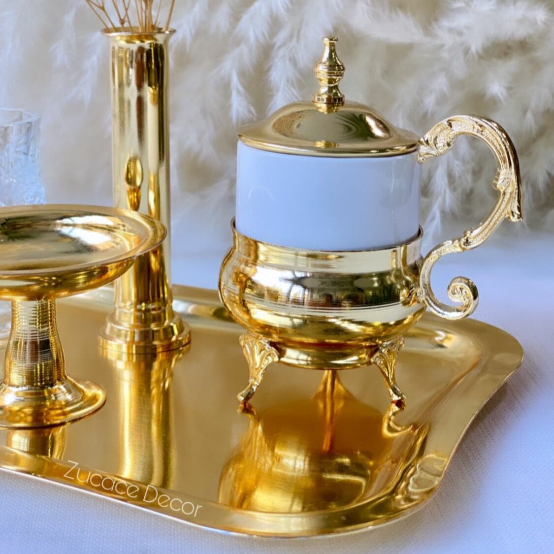 Bu setimiz 1 adet tepsi 1 adet kahve fincanı 1 adet karanfillik 1 adet lokumluktan oluşmaktadır.